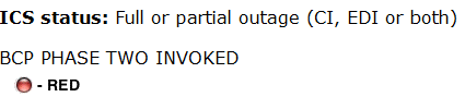 Due to the unscheduled outage now being experienced in the ICS, Phase Two of BCP has now been invoked. This now includes Sea Cargo Reports.